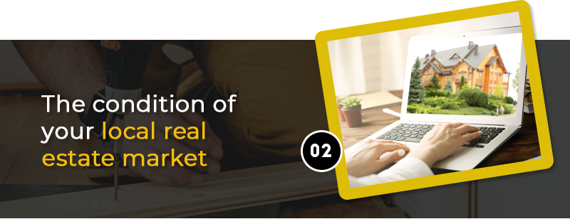 Another major factor you need to consider is the condition of your local real estate market. It's truly a case-by-case study in the market now as each one is different.